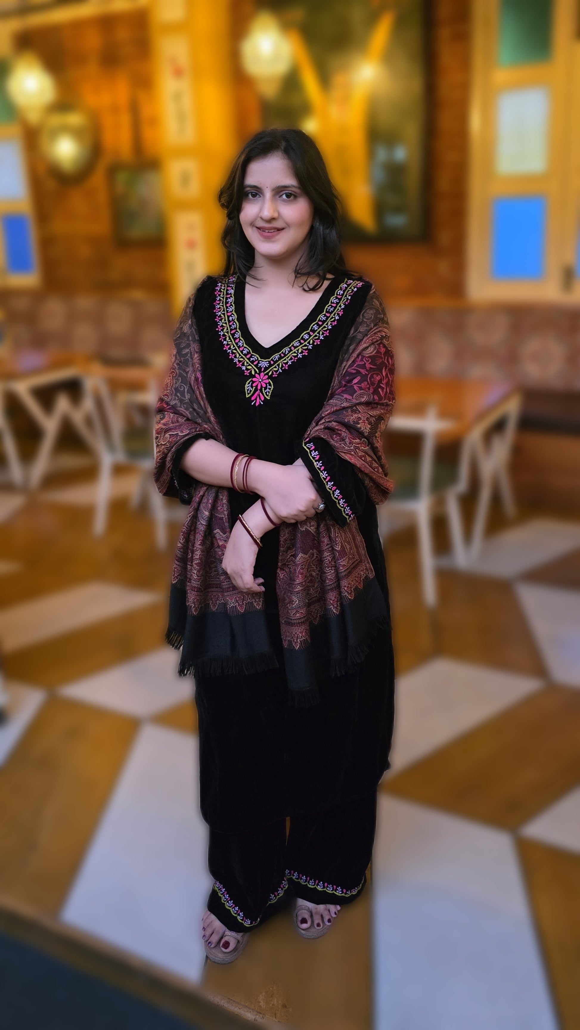 Meshki Makhmal Chikankari Kurta Set